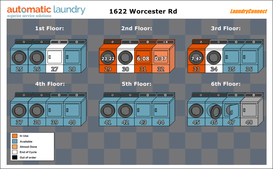 Dryer | In use | 40 minutes left | ||