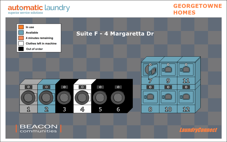 Dryer | In use | 61 minutes left | ||