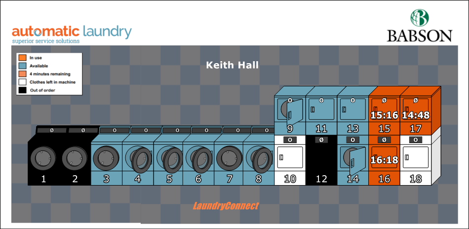 Dryer | In use | 15 minutes left | ||