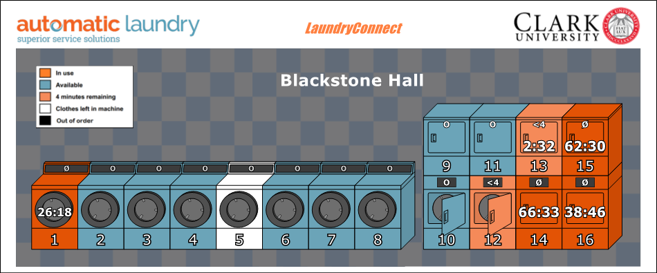 Dryer | In use | 45 minutes left | ||